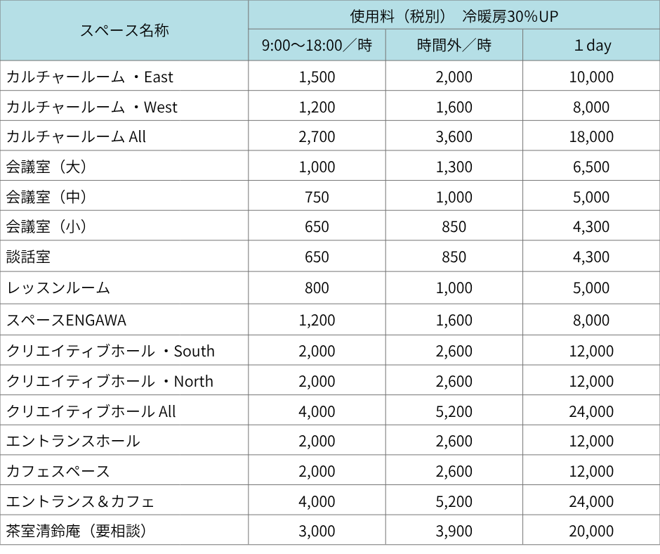 ※Cafeとエントランス両方使用する場合は料金は倍になります。